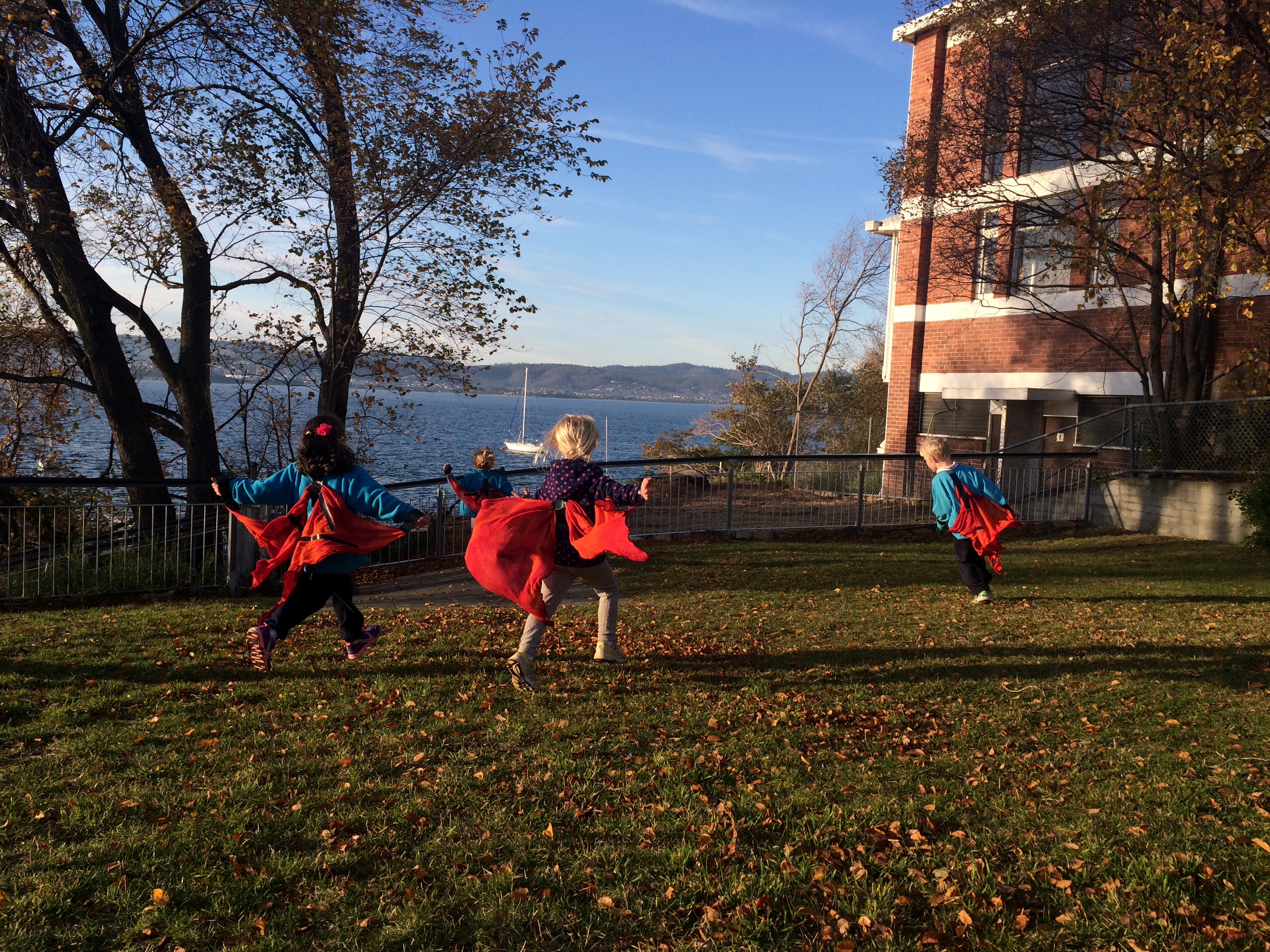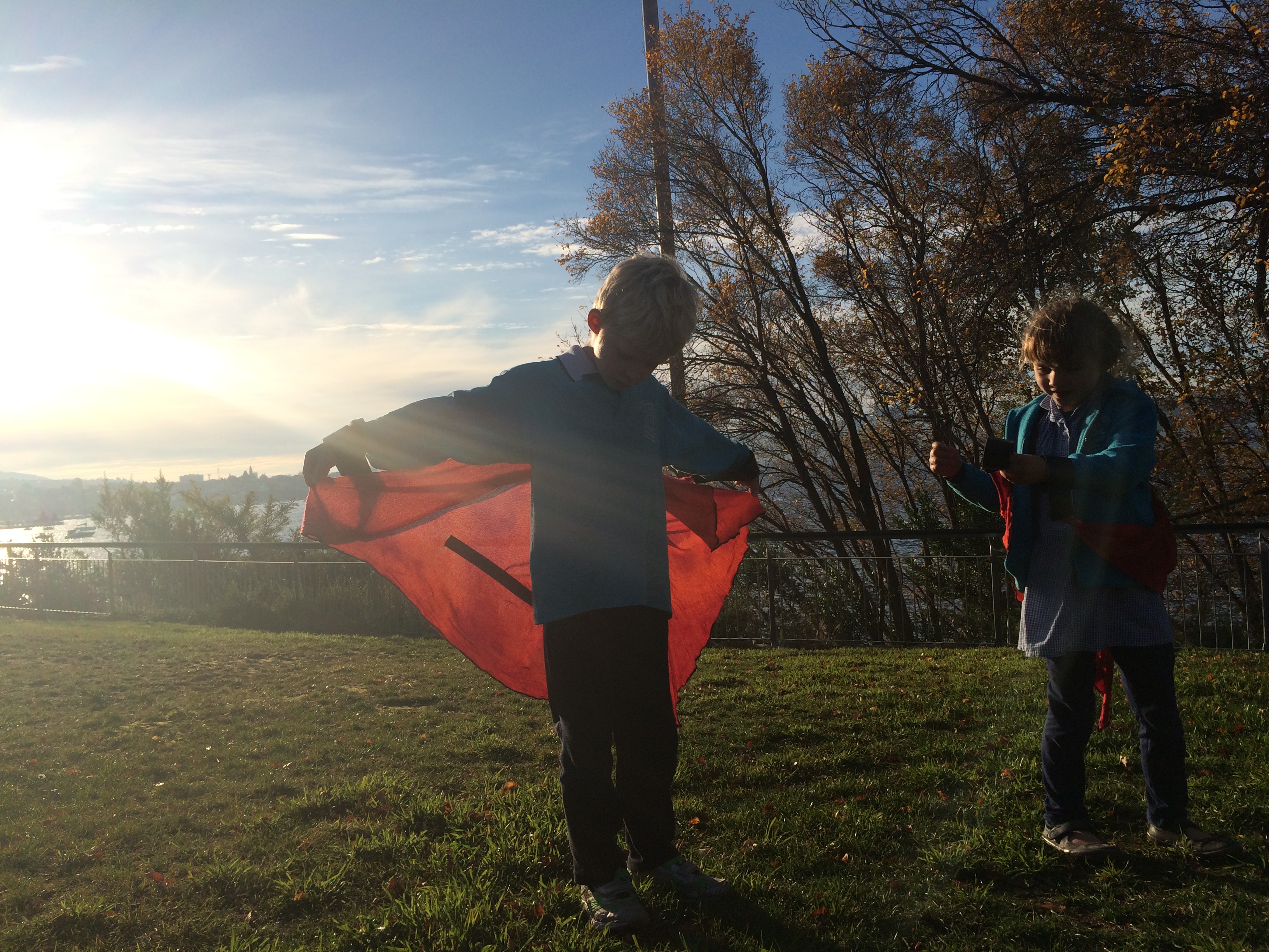 In a perfect world you would sew on elastic, but we were aiming for speed and efficiency (as we did this activity in the park on the walk back from school) so tape was the easy way to go for us!