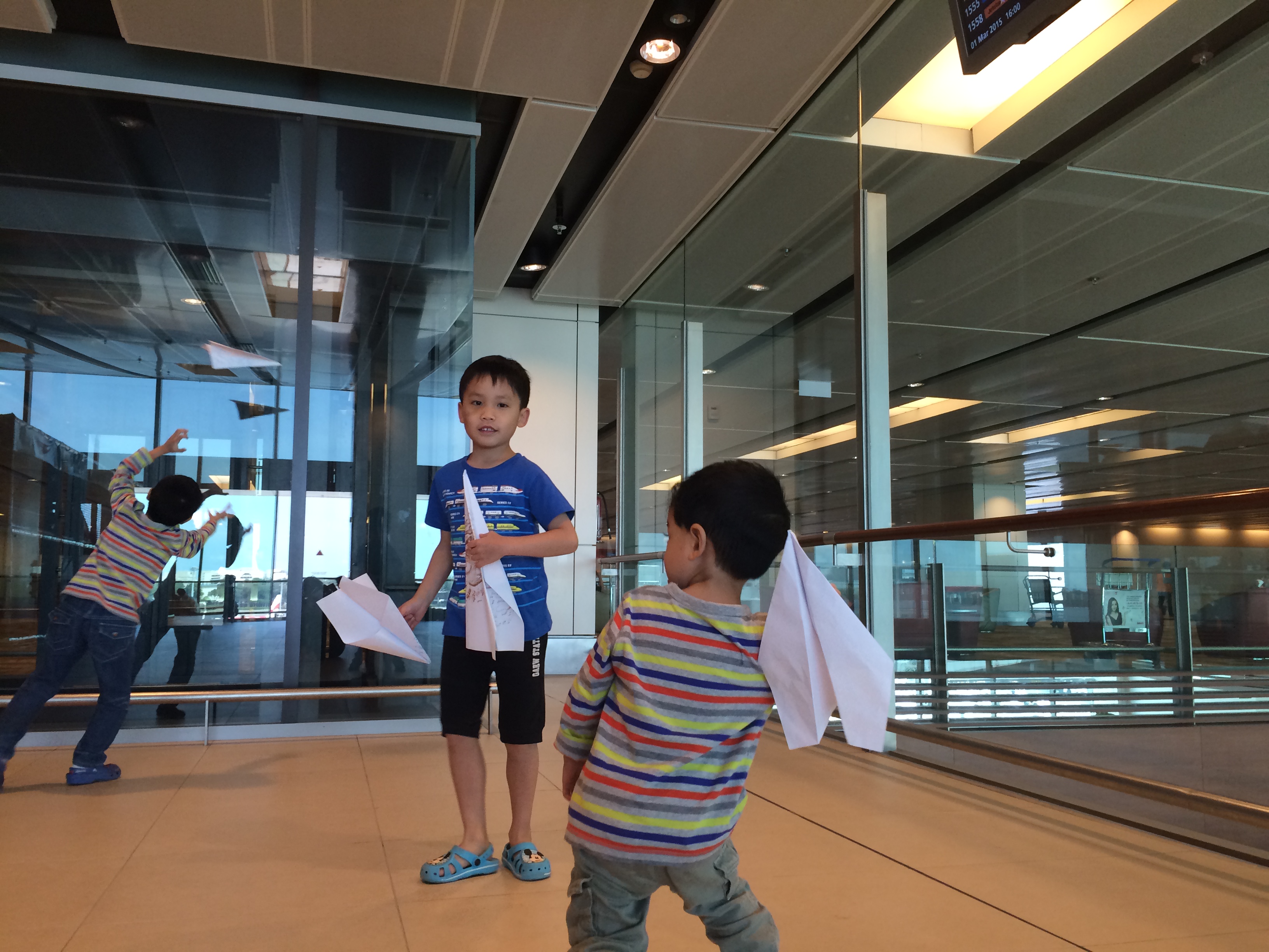 Blow them up (in an empty part of the airport) let any other kids who are waiting join in, once you are ready to board your next plane simply pop them and be on your way! (Paper planes are also work a treat!)