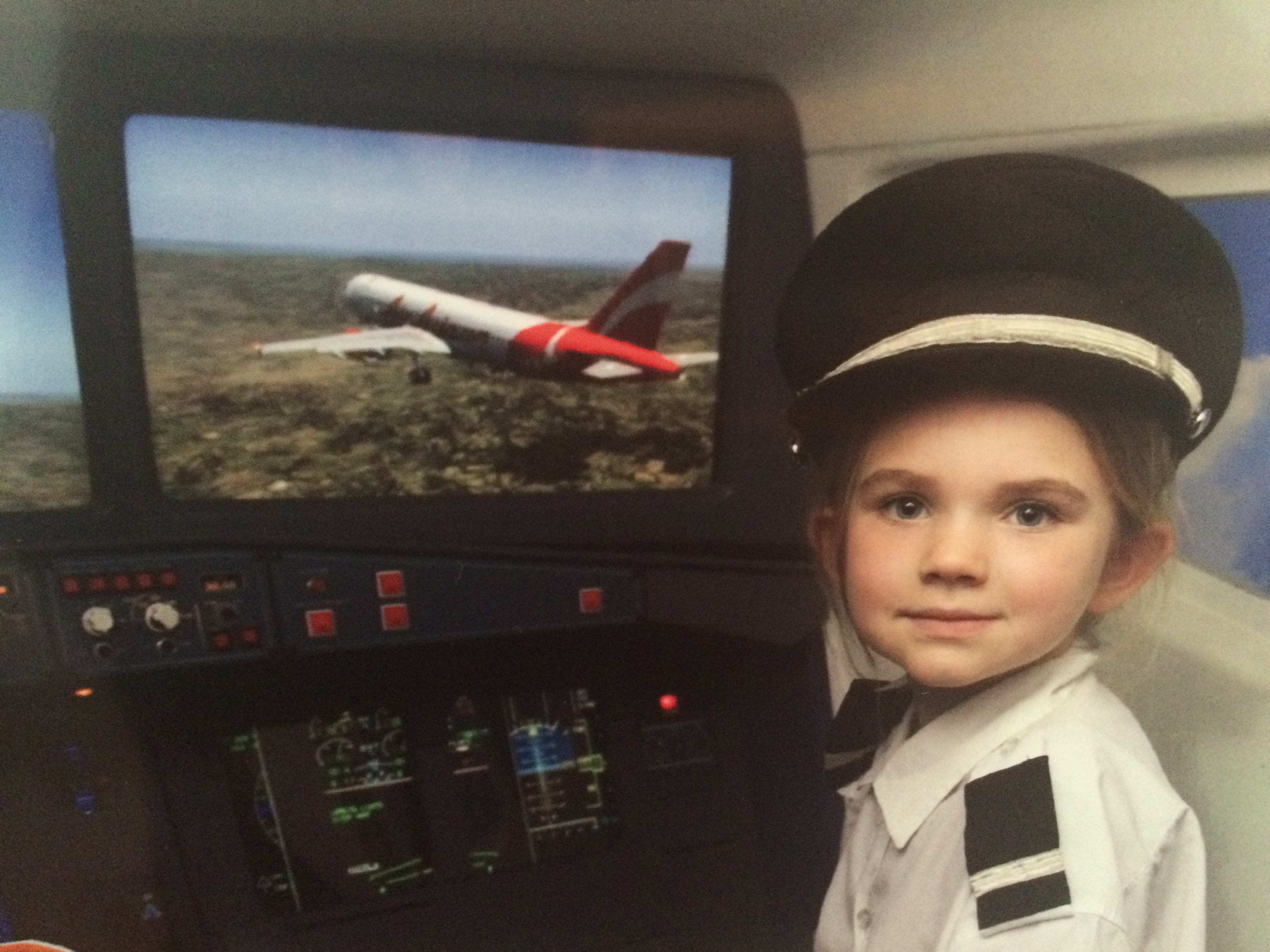 While I didn’t take and photos in the cockpit (this photo was taken later at a flight simulation that we were lucky enough to visit in Malaysia) I was carrying a large intimidating camera with me when we entered the cockpit so I believe photos are allowed should you wish to get a snap with your pilot. Remember to thank him/her immensely for giving your tot the additional time.